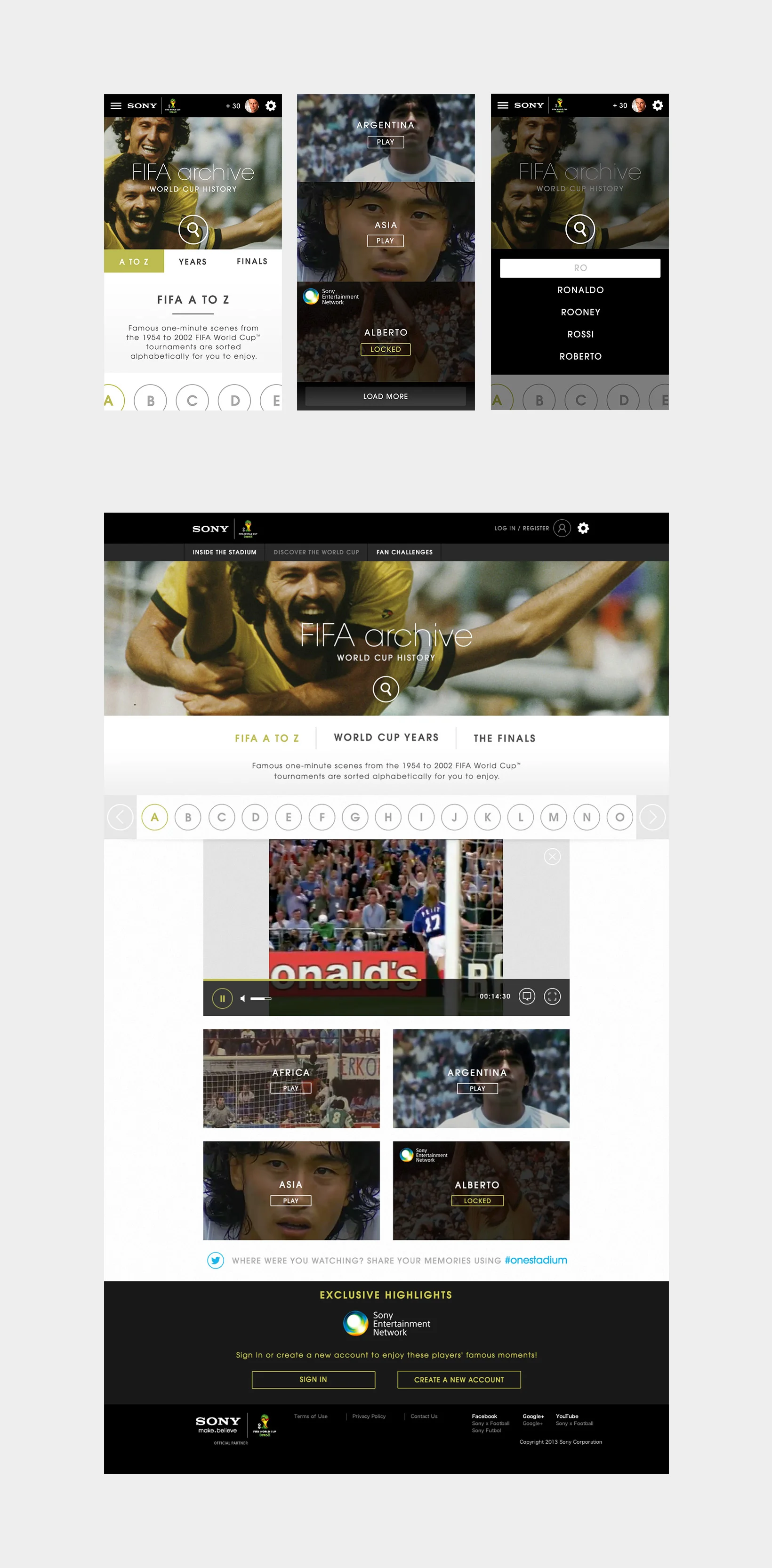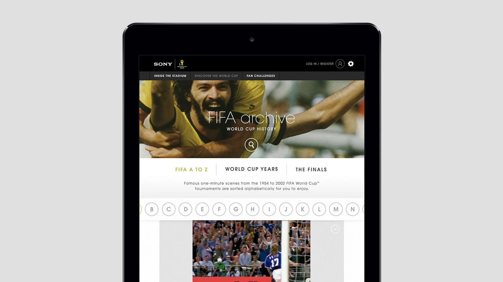 As part of the online experience we gave all the fans the chance to relive their past World Cup highlights with Sony's FIFA archive. As users explored the site, they gained more access to exclusive locked video content.